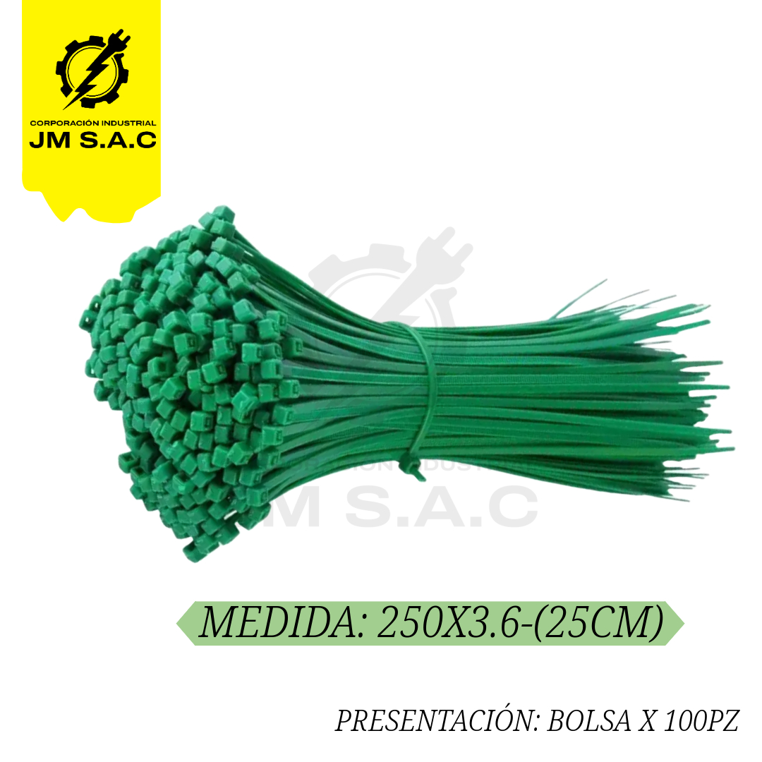 • CINTILLO DE NYLON 250X3.6MM-25CM VERDE UL X 100PZ sirve para un trabajo de cableado perfecto.