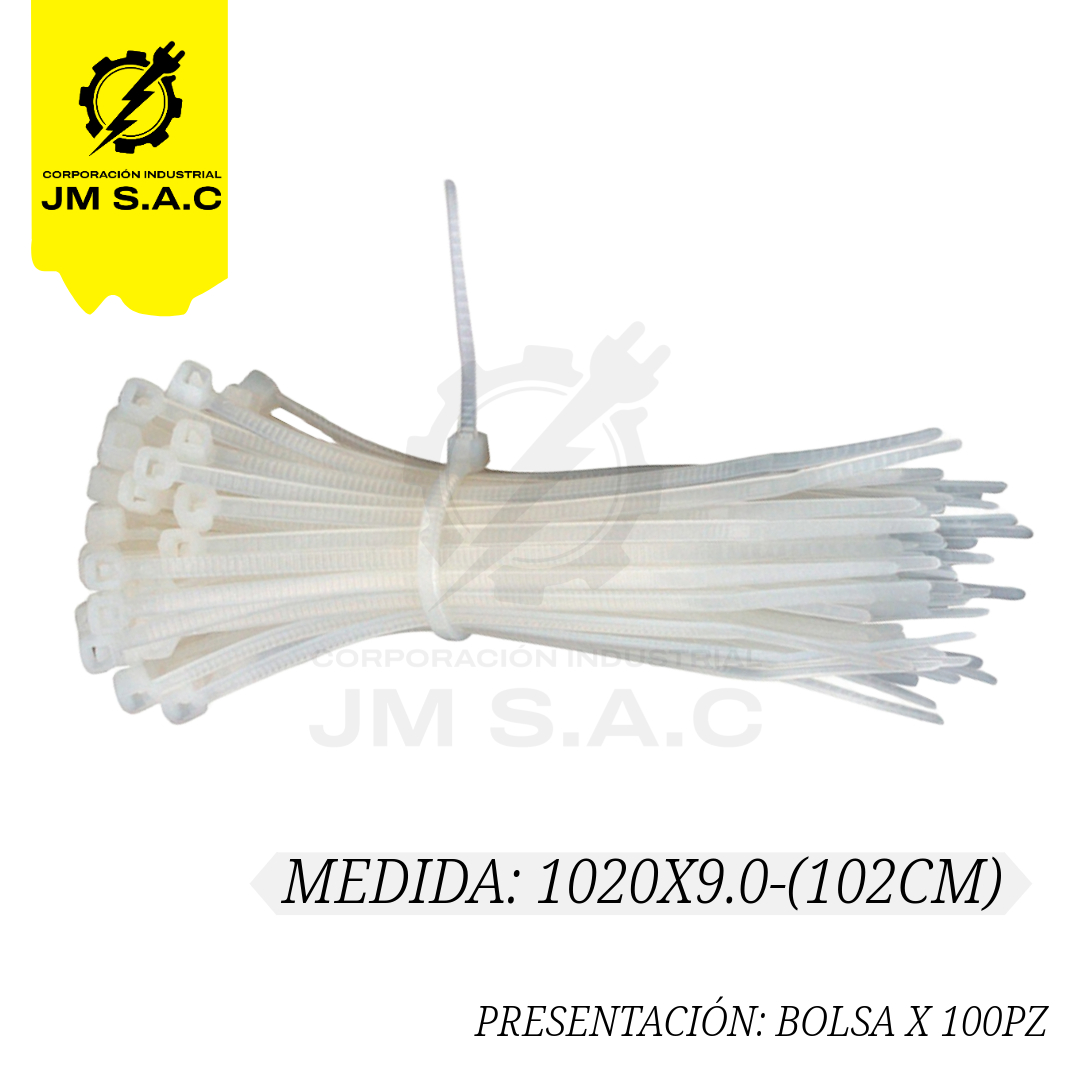 • CINTILLO DE NYLON BLANCO 1020X9.0MM-102CM UL X 100PZ sirve para un trabajo de cableado perfecto.
