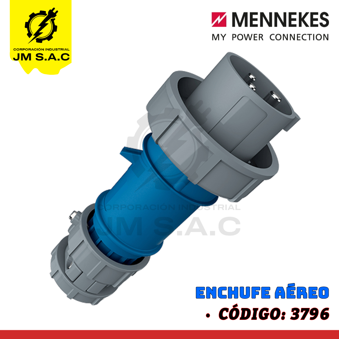 • ENCHUFE AÉREO DE 16AMP 2P+T 230V AZUL 6H IP67 POWER TOP CON PINES NIQUELADOS