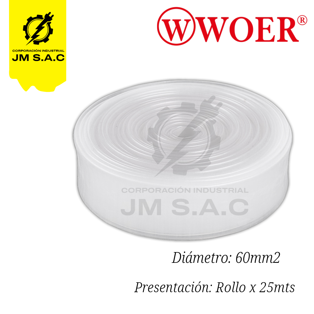 • MANGA TERMOCONTRAIBLE F60MM TRANSPARENTE 2″ X 25MTS