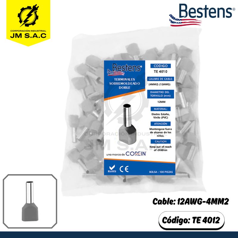 • TERMINAL SOBREMOLDEADO DOBLE 12AWG-4MM2 GRIS DIM.12.0 X 100U