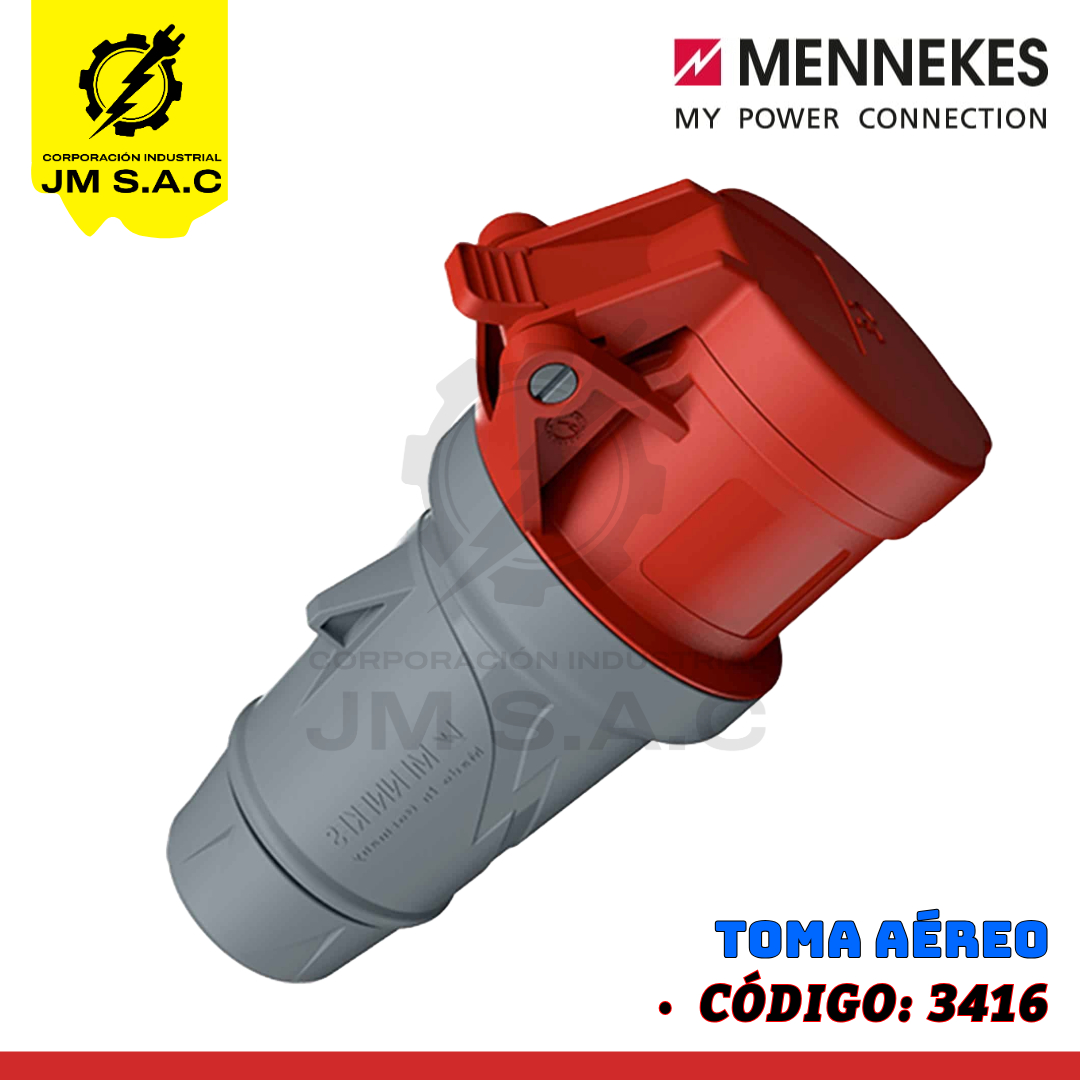 • TOMA AÉREO DE 32AMP 3P+N+T 415V ROJO 6H IP44 2 CUERPOS
